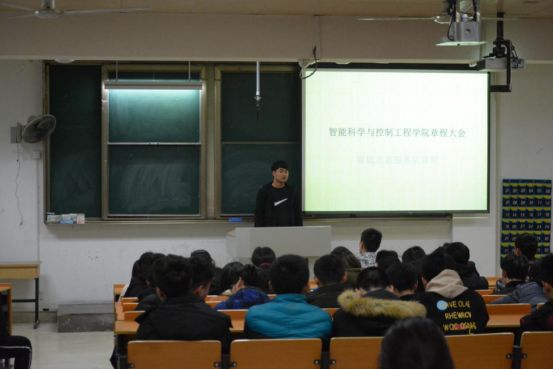 本次大会主要围绕《志愿者服务队章程》、《智蓝服务队章程》、《志愿服务时间章程》三大章程展开,《志愿者服务队章程》主要分为五大章,实践部干事吴婷分别从志愿者的宗旨、权力、申请与退出、管理制度、任务发布等方面向同学们作了详细介绍,增加了同学们对《志愿者服务队章程》的了解。实践部干事黄石磊则从《智蓝服务队章程》中的总则、基本义务、纪律、监督与管理、活动奖惩和扩招问题等方面向同学们进行讲解。志服时间一直是同学们所关注的,因此生活部干事朱磊从志愿服务时间的人员规定和志愿服务时间的获取规定及奖惩制度方面进行介绍,并着重提醒了同学们志服时间卡的填写要求和注意事项。