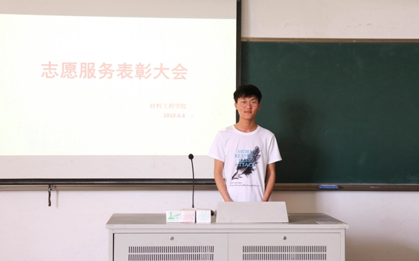 为更好地弘扬志愿服务精神,号召更多的同学加入志愿服务中来。2019年4月8日中午,材料工程学院在2308教室举办了材料工程学院2019年志愿服务表彰大会。材料工程学院辅导员江赛德老师应邀出席,学生会副主席张雷和获奖学生代表参加了本次活动。