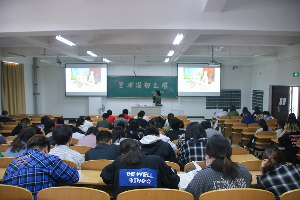 周尤老师结合自己的绘画经历与同学们分享心得,并展示了自己不同时期的绘画作品,与同学们交流有关创作的经验。很多同学听得聚精神会神,有的同学还积极提问,请教周老师平时在绘画遇到的一些难点。周老师一一耐心作答。通过本次讲座,同学们不仅加深了对绘画创作的理解,对美的正确欣赏和追求,还陶冶了艺术情操,提高了综合素养,促进了全面发展。(审稿人:甘黎明)