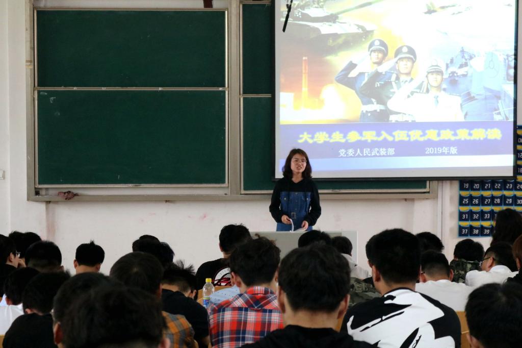 本次动员大会,增强了大家对参军入伍政策的了解,大大提升了参军入伍的积极性。希望有更多人文学子能投身军营,参军报国,为自己的青春增添一份荣耀。(审稿人:高欢欢)