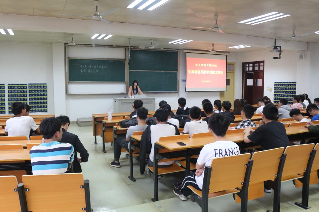 4月25日,电子信息工程学院在1432教室召开生源地信用助学贷款工作会。学生工作部(处)学生资助管理中心副主任曹轶蕾、学院辅导员邹文荣、学院资助中心成员、各班生活委员及需要申请助学贷款的同学参加了会议。