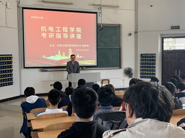 近期,为给有考研意向的学生提供切实有效的备考规划和指导,传授如何报考、备考、择校等技巧,机电工程学院在8100教室举办了一场别开生面的考研指导“面对面”讲座。本次讲座邀请院党委书记吴钟鸣副教授主讲,各年级有志于考研的学生200多人参加。