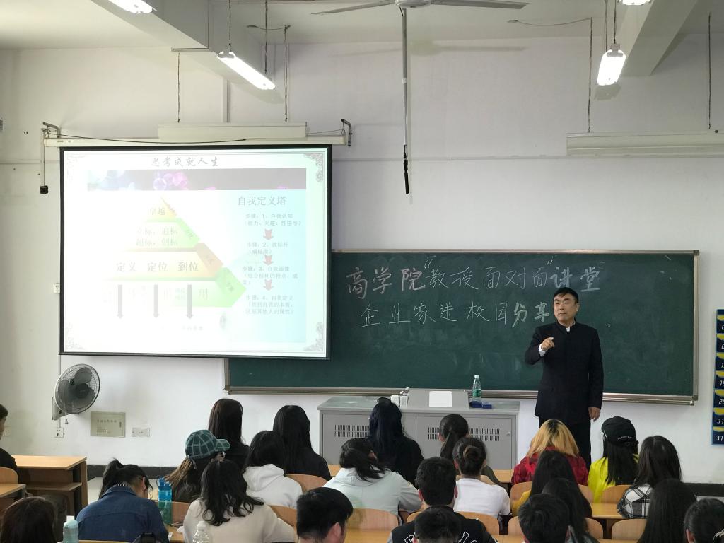 讲座中,李志明总裁向大家介绍了企业使命愿景和人才培养体系,帮助同学们了解企业经营理念和对人才的要求,特别是思维方式、热情和能力组成的人生结果等式,让同学们对行业和企业有了更直观的认识。随后,李总结合分享他军人、记者、公务员、企业家等不同经历,与团队拼搏将企业从零起家发展到多元化业务集团的创业史,提出“人生的自我定义塔”,引导同学们思考四个问题,即“我是谁、哪里来、哪里去、如何去”,鼓励同学们学会思考、勤于思考,并尽早确定目标,向着目标不断努力,以思考成就人生。最后,李总送给在场的同学们三句话:永远不要抱怨,培养坚定的信念,勇敢地追求卓越。现场同学们表示,李总丰富的阅历、精炼的语言、幽默的风格,体现出企业家独特魅力,给大家留下深刻印象,为生涯规划指明了努力方向。