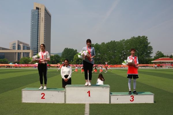 在大家的共同努力下,我院获得了本届运动会的体育道德风尚奖,学生广播体操荣获二等奖,更有多名学生运动员在多项比赛中获得佳绩。在三级跳远比赛中,我院的唐井爽和张爽两位同学分获第二名和第五名的好成绩;赵楠楠在女子100米短跑和100米栏中均获得第六名;王琦和赵涵在跳高比赛中分别取得了第三和第七的好成绩;面对耐力与速度的考验,丁兆薇同学不负所望拿下女子1500米比赛的第七名。