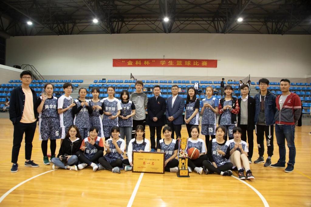 4月29日,学校第十二届“金科杯”学生篮球联赛决赛在江宁校区体育馆举行,商学院学生女子篮球队代表学院出战并勇夺冠军,学生男子篮球队获第三名。商学院党委副书记朱骅,院学工办副主任、团总支书记顾磊、院团总支部学生会社科联学生骨干及各年级学生代表到场观看比赛,为队员们加油鼓劲。