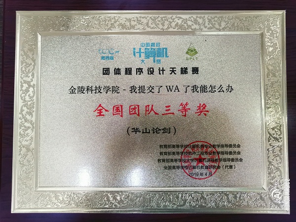 3月30日,软件工程学院、网络安全学院郭晓芃、苏汀等30名学生组成的3支学生团队参加了第四届中国高校计算机大赛—团体程序设计天梯赛华山论剑组的比赛,kaiyun官网荣获“江苏省高校特等奖”和团队二等奖1项、团队三等奖2项,其中《我提交了WA了我怎么办》团队最终获得第四届中国高校计算机大赛—团体程序设计天梯赛全国团队三等奖。