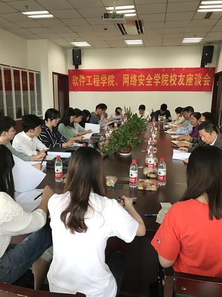 5月11日,软件工程学院、网络安全学院各届校友重聚金科并在科技楼2号楼325会议室进行座谈。副校长张燕、院长张正、副院长胡勇、教学督导邓建明教授、就业干事邵彦婷参加了座谈会,座谈会由院党委副书记徐斌主持。