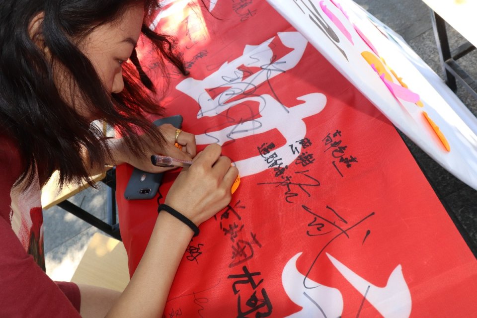 五月是我院的感恩教育月,前期各班已经开展了形式多样的“感恩教育”主题活动,学院资助小组征集了大量感恩宣言和手绘资助主题宣传画。活动当天,同学们踊跃参与,为参加宣传画比赛的选手投上了宝贵的一票,在诚信横幅上签下姓名,以表诚心,并写下自己的感恩宣言表达对祖国、社会以及帮助过自己或者他人最真诚的感恩之情。