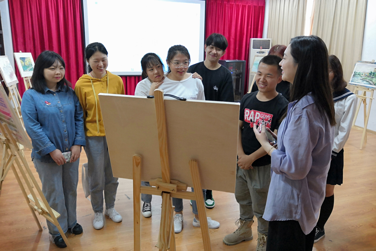 本次画展所展出的作品,源自于动漫学院3.20心理健康周活动——“情绪多彩盘”户外心理写生中现场创作的作品。在画展中,院心理辅导站王老师和画作作者共同对作品做解读,从心理和艺术的角度分别对个人创作中的情绪语言进行剖析。现场,观展的师生积极交流对写生作品意境及色彩的理解,探讨情绪在艺术作品中的呈现与表达方式,进一步激发了同学们通过艺术创作的路径开展心理健康活动的热情和兴趣。