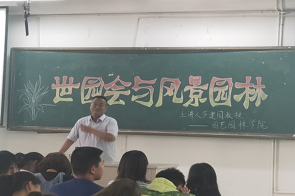 为让同学们了解园林、园艺和风景园林专业在世园会发挥的重要作用,2019年6月12日,园艺园林学院于图教楼B305举办了一场题目为“世园会与风景园林”的讲座。南京林业大学风景园林学院硕士生导师、南京林业大学园林研究所所长芦建国受邀担任主讲。