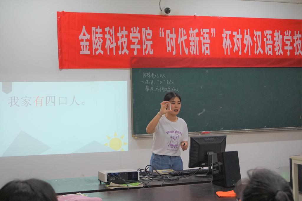 为提高汉语国际教育专业学生对外汉语教学技能,人文学院与汉语国际教育专业校外实习基地——南京时代新语教育专修学校于6月5日在文科楼109共同举办第九届“时代新语”杯对外汉语教学技能大赛决赛。人文学院张维亚院长、赵步阳副院长、时代新语殷学宁校长出席本次竞赛,时代新语赵春晖、隋毅杰老师,人文学院章澄、衣玉敏、杨梅、吴海燕、蔡颖、陈静老师担任竞赛评委。