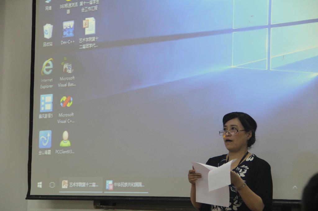 6月17日晚上,艺术学院第十二团学代会在6300教室隆重召开,艺术学院学院党总支副书记严园、团总支书记丛扬子、学生党支部书记陈烨和辅导员刘国英老师出席大会,艺术学院第十一届团总支学生会委员、学生会各部门代表、各班级代表参会。