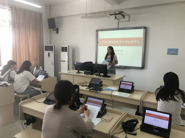 为做好暑假期间留校学生安全教育工作,关心、关怀和支持留校考研学生,保障学生暑期实践、考研复习的顺利进行,外国语学院于7月3下午在8301语音室召开了暑期留校学生安全教育会,学院党总支部书记李星,学工办副主任王奕,辅导员杨婷以及留校的27名学生参加了本次会议。