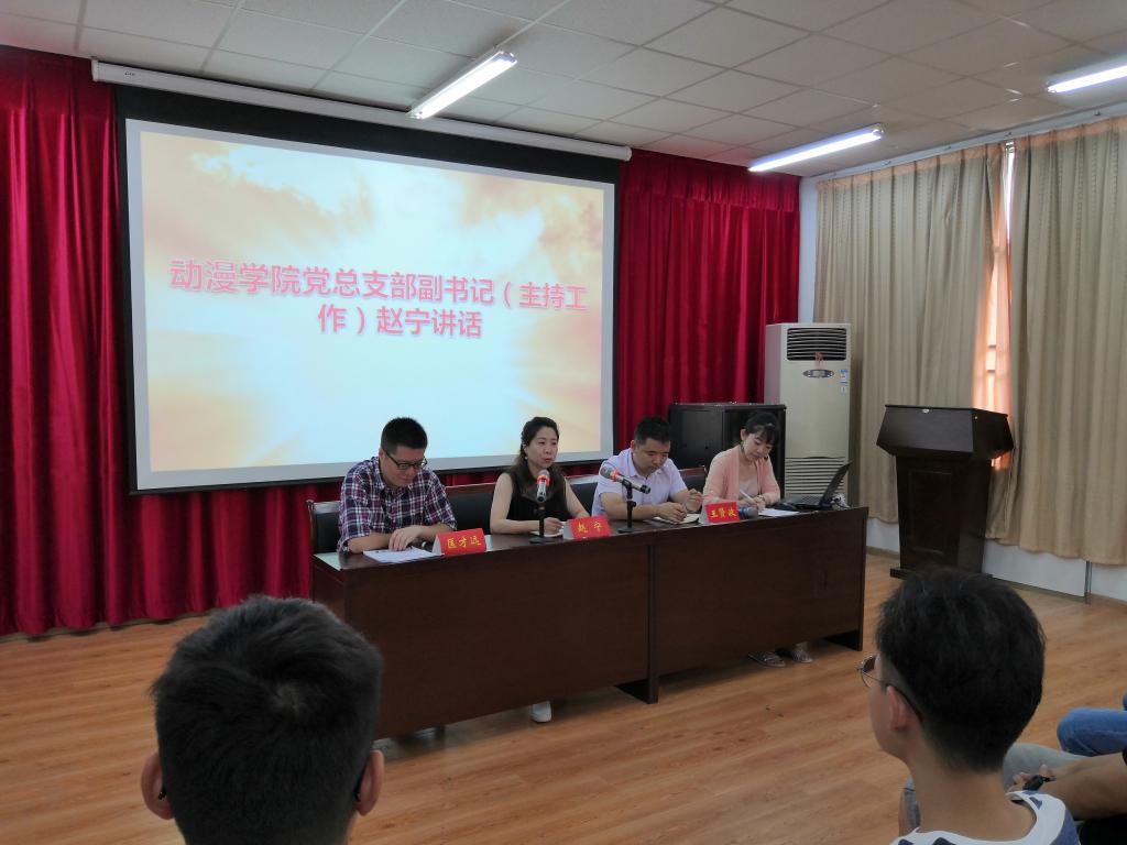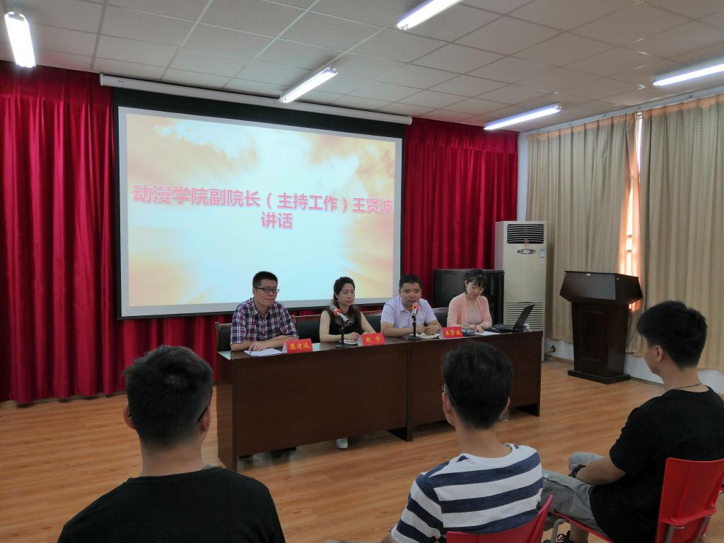 8月31日,学院举办2019级专转本新生开学典礼。动漫学院党总支部副书记(主持工作)赵宁,副院长(主持工作)王贤波,党总支部副书记、副院长匡才远出席,辅导员及所有新生参加。