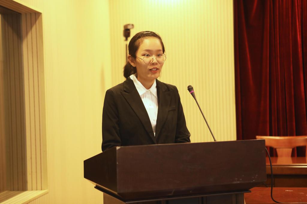新生代表19级工程管理专业朱奕澄同学表达了自己对大学生活的期待和憧憬,她表示愿与新同学们一起磨砺,锻炼坚强的意志和优秀品质;一起拼搏,努力提升知识水平和专业能力;一起奋进,成为有坚定理想信念的新时代中国青年。