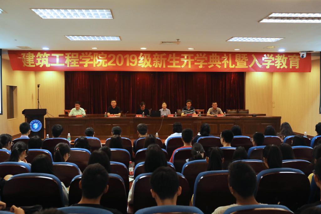 新的起点,新的征程,金秋时节建筑工程学院迎来了为了梦想不断前行的374名莘莘学子。9月15日上午9:00,学院2019级新生开学典礼暨入学教育在江宁校区图书馆第二报告厅举行。学院党委书记沈瑾,党委副书记、院长宣卫红,党委副书记张乐乐,副院长梁献超,副院长刘志峰出席。全体辅导员、班主任、教师代表、学生干部代表和2019级新生参加。