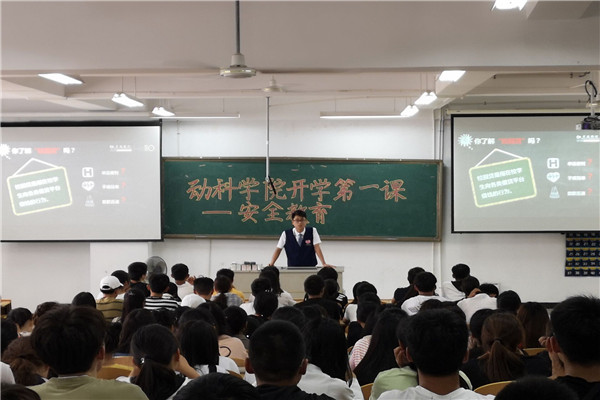 为增强2019级新生安全意识,树立安全第一的思想观念,增强自我防范风险能力,创建和谐平安校园,近日,动科学院在图教楼B205开展面向新生安全教育第一课。讲座由李青励老师主持,2019级新生全体参与。