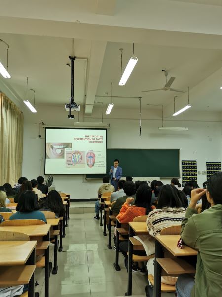 首先,徐校长向大家简单介绍了法国文化中著名的葡萄酒文化,重点介绍了葡萄酒对人的益处,并亲自为同学们演示了正确的开酒方式。接着向同学们讲述了法国用餐文化,通过徐校长生动的描述,同学们了解到在法国文化中用餐有许多的礼仪,包括就坐的姿势、品菜的顺序都十分有讲究,与我国的用餐习惯有许多不同之处。此次讲座对同学们平时的专业课内容做了拓展,大家对这些新奇有趣的内容表现出了浓厚的兴趣,在专注听讲的同时也流露出对异国文化的尊重。