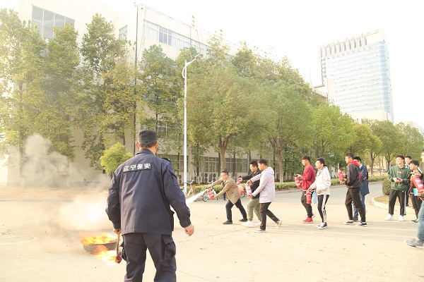 讲座结束后,路照亮老师带着同学们到室外进行了消防演示,他向同学们讲解了灭火器的使用办法,演示了如何进行灭火。同学们认真观看了现场灭火演示,积极参与灭火操作演练,严格按步骤进行,做到了反应敏捷、流程熟悉、动作规范,圆满完成灭火演练,整个过程严肃、有序、高效。