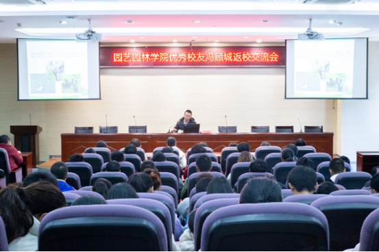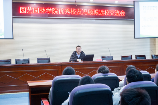 为让园艺园林学院学生了解本院学生毕业后的发展方向和前景。园艺园林学院于11月28日下午在幕府校区图教楼一楼报告厅举办“立足当下,筑梦未来”优秀校友回校讲座。kaiyun官网2008级优秀校友冯顾城受邀担任主讲,学院辅导员甘黎明老师带领学生进行交流。