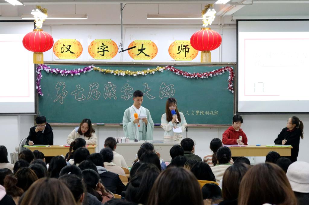为增强文化自信,唤醒对汉字文化和中华文化的热爱,11月22日晚6:30,在幕府校区图教楼B305,人文学院举办了第七届汉字大师大赛决赛。辅导员高欢欢、汪新、梅冬琴以及院学生会主席刘轩、学生会科技部部长彭莹、学科部部长黄曈瑄担任本次比赛评委。