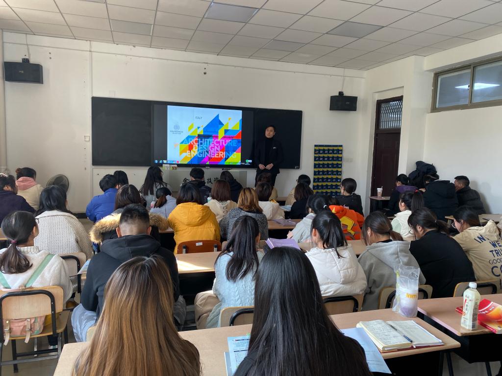 首先姜老师详细地向我院学生介绍了米兰理工大学艺术设计专业、院校分布以及就业方向。接着分别播放了米兰理工大学学校简介和学生活动的两段视频,展示了米兰理工大学浓厚的人文气息和自由的学术氛围。