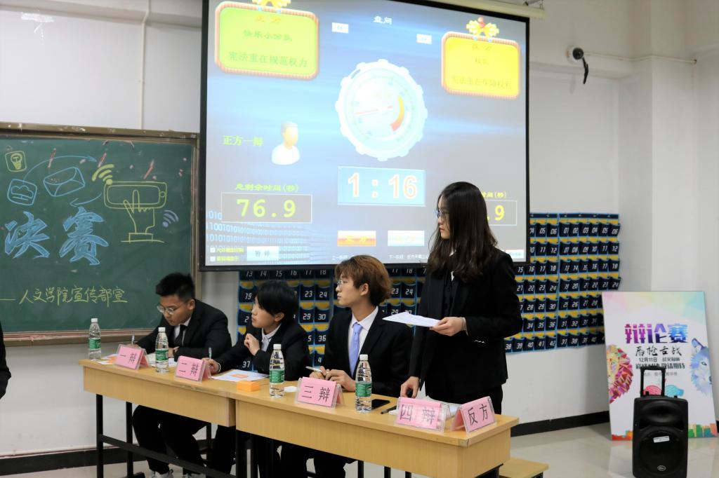 唇枪舌战,辩赛场硝烟;口若悬河,理是非曲直。12月11日18:00,人文学院在幕府校区图教楼405举办了第十三届唇枪舌战辩论赛总决赛。人文学院学生会主席黄瞳瑄、副主席彭莹,第十二届最佳辩手孙威康等担任评委。