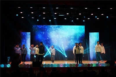 晚会现场座无虚席,场面火爆。晚会开始摇滚公社乐队演奏凭借激昂的音乐、优美的旋律、整齐划一的鼓点瞬间点燃了现场的气氛,观众们的掌声、叫好声此起彼伏。一首《可惜不是你》配合着手语操拉开了晚会的序幕,小品《阴差阳错》向我们展现了偶遇带来的快乐,结合多种现代元素,以幽默搞笑的风格赢得观众的阵阵掌声。歌曲《飞》民族特色与流行元素揉入其中,为观众们带来了美妙的乐章。舞《欢乐的跳吧》让大家领略了青春的精彩。歌伴舞《陪着你走》伴着悦人的音乐缓缓而来,跃动的舞姿,流彩的灯光,让人不自觉的沉浸其中。轻松幽默的小品表演《试镜》、唯美舞STEP UP》、吉他弹唱好日子》、歌曲演唱《梨花又开放》、《野子》、《LOSE YOURSELF》、《COUNTING STARS》及歌曲串烧等婉转动听,击人心灵,令人神往,给观众们带来一场视听盛宴。整场晚会经典与流行相结合,传统与时尚相碰撞,精彩纷呈,高潮迭起,尽显青春的火热和激情。