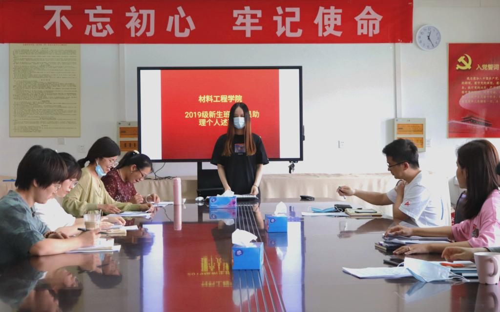 5月20日中午12点20分,材料工程学院在工科楼A503会议室召开19级辅导员助理考核评议会,材料工程学院党委副书记陈智慧出席,全体辅导员、2019级新生辅导员助理参加了本次会议。