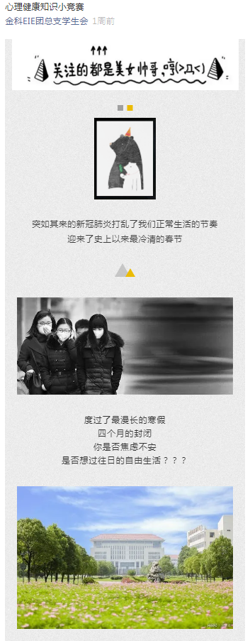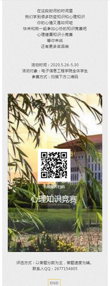 5月26-30日,学院通过微信公众号推文,开展线上心理知识竞赛。