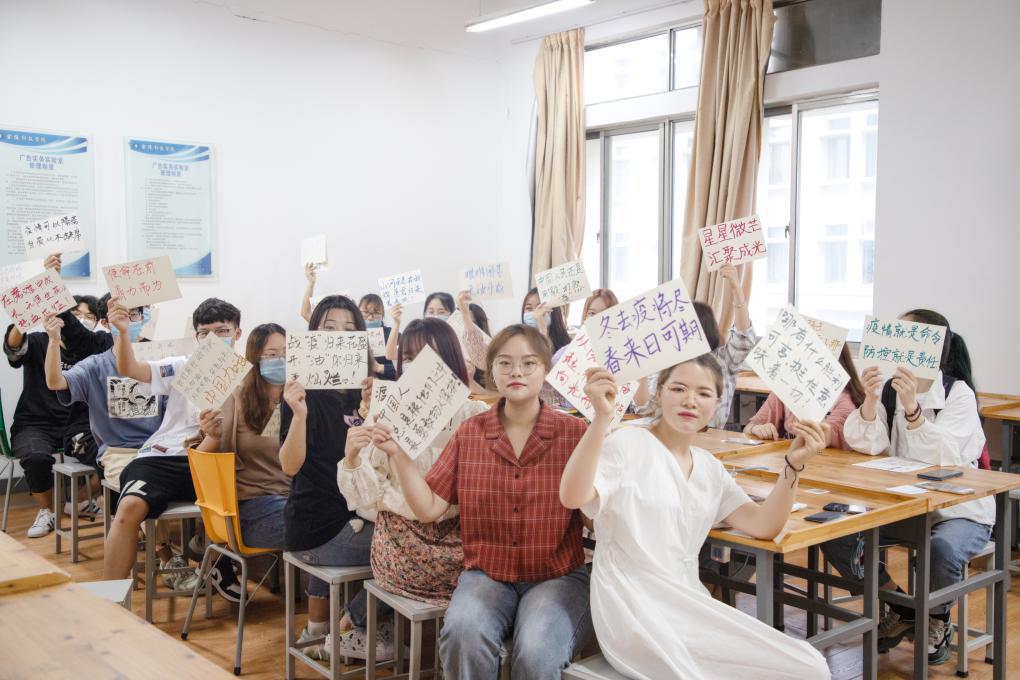 为确保本次主题班会大赛顺利进行,我院于大赛前期对学生干部进行赛制和主题等方面培训。考虑到抗击疫情时期的特殊情况,采取线上结合线下形式开展主题班会大赛。基于我院专业特色,采取了手写加油、视频接力等方式丰富班会形式、提升教育效果。并借助办公网络平台保证同学出勤情况和班会过程的顺利进行。