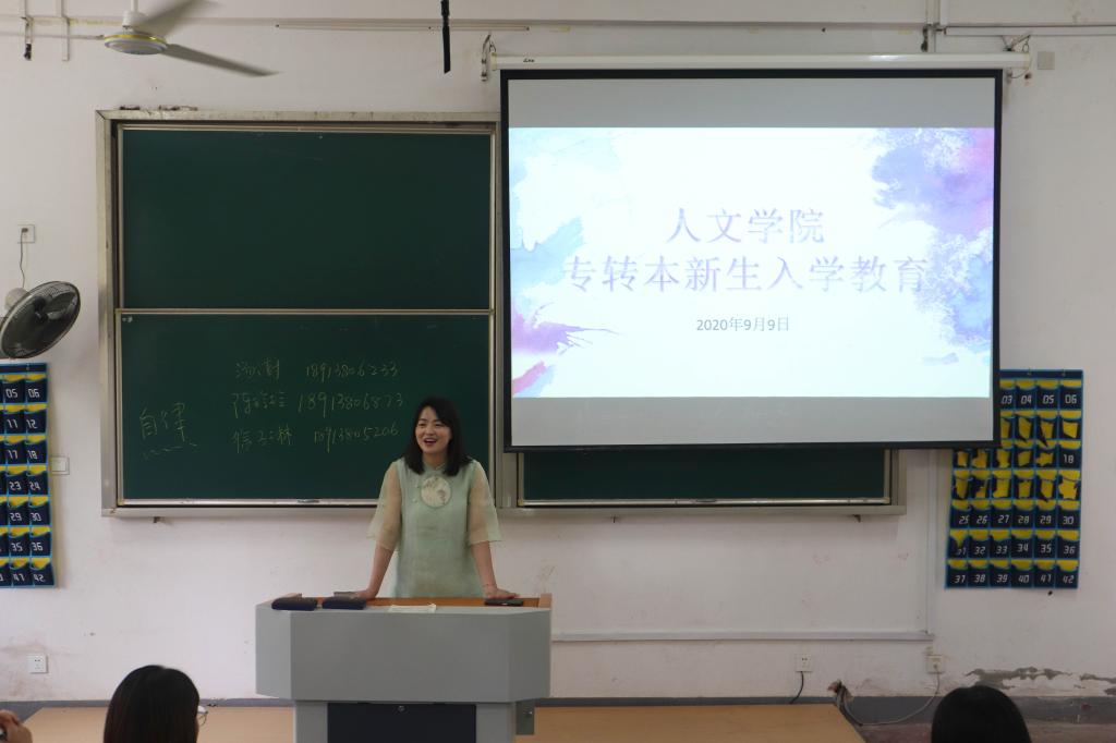 为切实做好2020级专转本新生入学各项工作,9月9日上午9:30,人文学院在教学楼二阶举办2020级专转本新生入学教育活动。学院旅游管理系副主任陈玲玲、学工办主任童明明、党务负责老师杨一鸣以及辅导员老师出席了本次活动。活动由童明明老师主持,2020级旅游管理专转本的全体新生参加了本次活动。