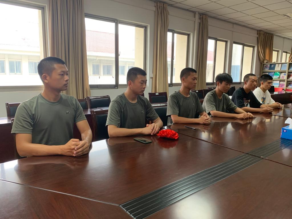 喻强副书记首先祝贺同学可以顺利通过层层考验,成为一名光荣的中华人民共和国军人,并向同学了解入伍的去向分配,简要介绍各部队的类型,帮助同学缓解对未知生活的紧张与焦虑。喻强副书记建议同学珍惜在军营磨砺自我的机会,坚持不断学习各方面的知识,特别是不要放松科学文化知识的学习。同学们要学会尊重前辈,培养自律刻苦、勤劳勇敢的优良品质。