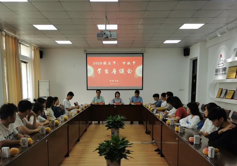 9月30日下午,学院在7406会议室召开了2020年国庆节、中秋节学生座谈会,院党总支部副书记(主持工作)赵宁、副院长(主持工作)王贤波、党总支部副书记副院长匡才远与同学们亲切座谈。座谈会上,三位院领导详细询问了大家国庆假期的计划安排,听取同学们对于学院发展的建议心声,并叮嘱同学们在注意政治安全、生命安全、交通安全、防疫安全、防诈骗等各类安全的同时,适当休息、独立思考,利用假期做好个人的大学生涯规划。会上,院领导们给学生们发放了满载着学院关心祝福的节日慰问品,将关爱和叮嘱一同送到学生心里。