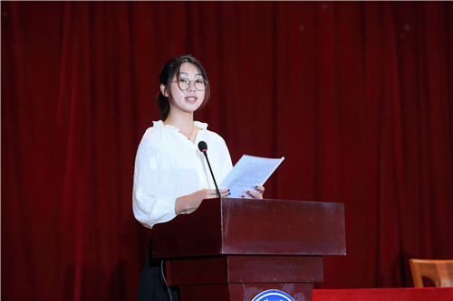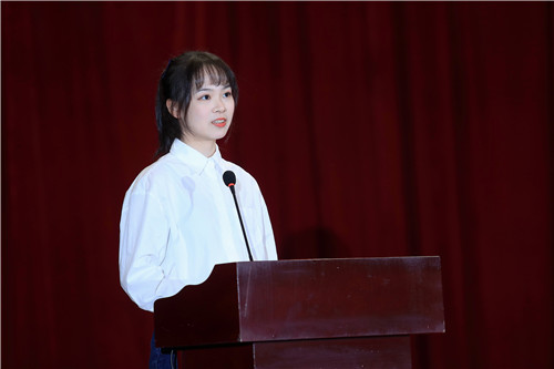 新生代表20城乡规划班应佳茜同学表达了自己对大学生活的期待和憧憬,她倡议新同学们“树立目标,鞭策自我;团结友爱,互帮互助;尊师重道,勤学好问;严于律己,规范做事”,用青春来诠释曾经的誓言,用汗水来锻造未来的辉煌。