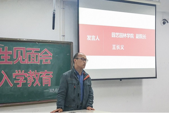 为让2020级新生更加了解大学生活、学院特色及专业前景,园艺园林学院于10月22日18点在图教楼B205举办党政领导与新生见面会暨2020级新生入学教育,见面会由辅导员王玲玉老师主持,院党委书记陈玉林、院长宰学明、院党委副书记钱江、副院长王长义出席本次见面会。