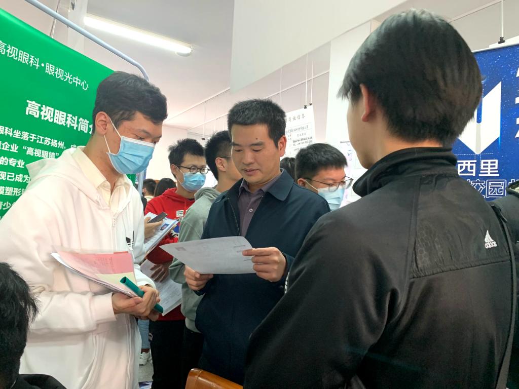 双选会现场气氛热烈,人潮涌动。喻强副书记和陈智慧副书记与同学们亲切交谈,了解同学的择业倾向和就业准备,鼓励同学抓住机会,多与用人单位交流,了解岗位要求与发展前景,争取利用这次招聘会,明确自身的优势与劣势,找到适合自己的岗位。同学们准备充足,积极向心仪的单位咨询并投出简历,在与用人单位沟通的过程中充分展示材料学子的专业素养和综合实力。视光系李新华主任、王玲老师等也到现场了解情况,为学生和企业架起沟通的桥梁。