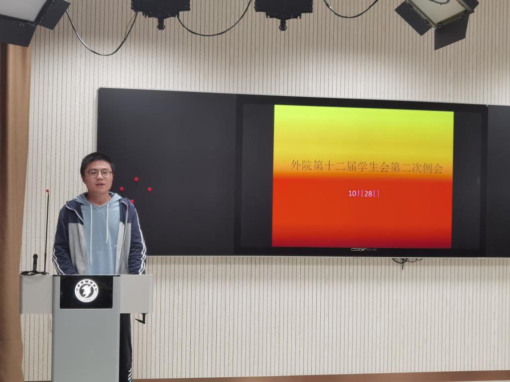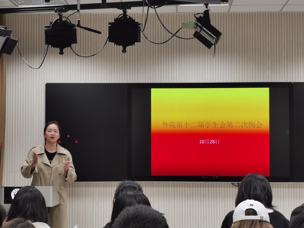 10月28日下午,外国语学院在8305教室召开了第十二届学生会迎新见面会。参加本次会议的有外国语学院党总支部李星书记、团总支部书记杨婷老师以及第十二届学生会全体成员。