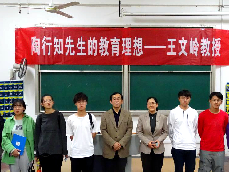 讲座中,王文岭教授以陶行知先生教育理想、形成缘由、路径探索为线索,结合时代特征,联系人文地理,详尽地分析了陶行知先生的一生:一生求索,半世心血,竭力促成平民教育,惟愿真正做到桃李满天下,福泽千万家。通过展示行知先生的家书与著作,淋漓尽致地展示了他矢志献身教育的崇高情怀。讲座期间,王教授感慨于先生德行之高尚——“捧着一颗心来,不带半根草去”,崇敬之情昭然若揭,台下同学亦深受触动。他深入浅出地讲解,使在场同学们受益匪浅。