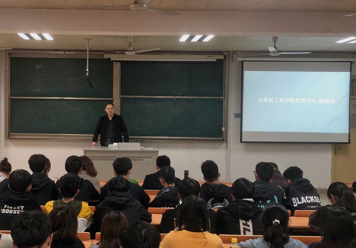 为了帮助2020级新生更好地了解学校,了解所学专业,尽快适应大学生活,计算机工程学院开展了为期一个月的新生入学教育活动。10月28日下午,学院党委书记陈冠亚、副书记陈莉莉、副院长徐永华、全体辅导员和2020级新生参加了开班活动。