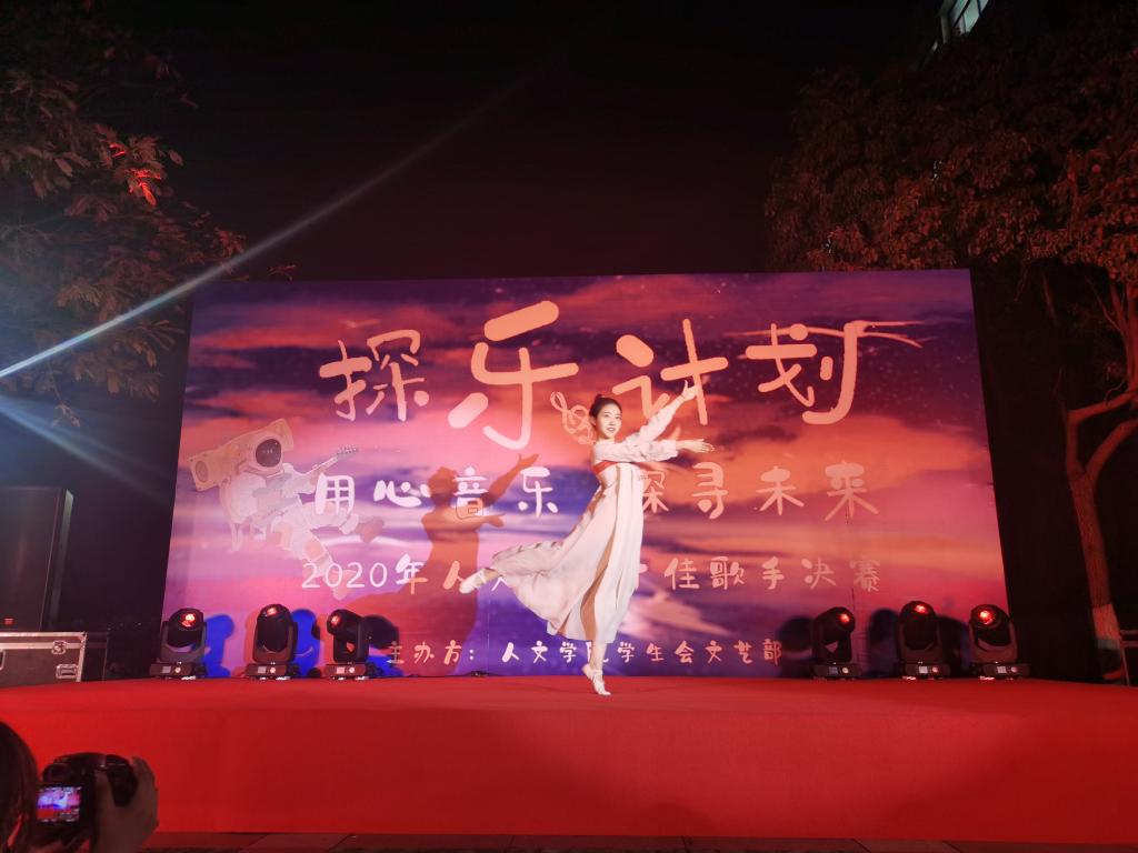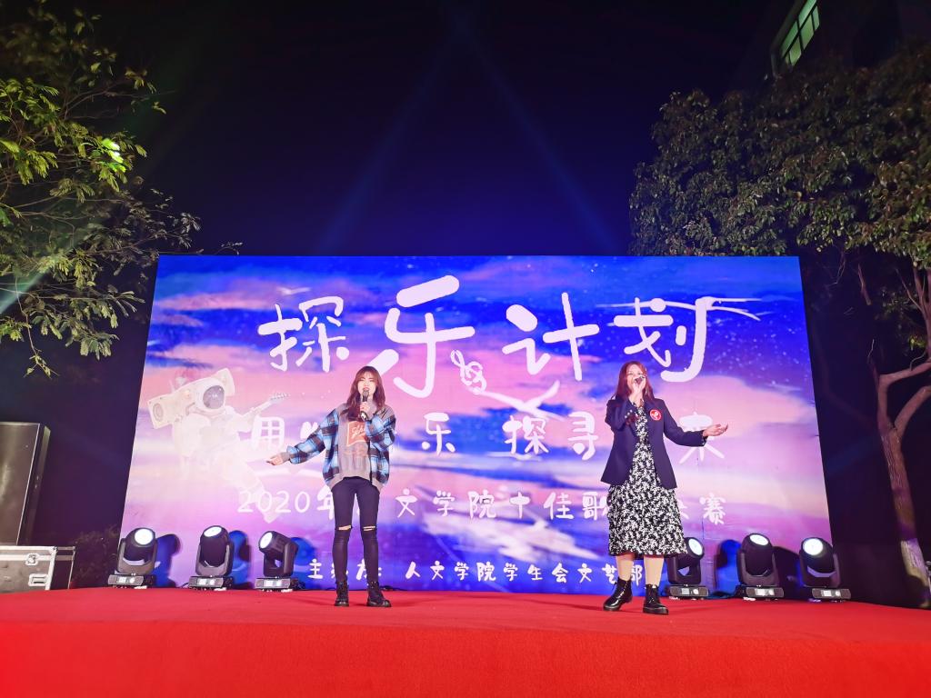 用心音乐,探寻未来,为丰富校园文化生活,倡导积极健康的娱乐方式。11月20日晚6:30,人文学院在幕府校区教学楼前广场,举办了2020年“探乐计划”十佳歌手大赛决赛。我院党委副书记周建峰、辅导员高欢欢老师、王敏老师、大众评审及各年级学生代表参加了本次活动。