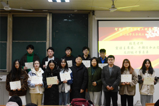 为了加强学生会建设,更好地服务于广大同学,同时进一步完善智控学院学生会的各项机制。我院于11月26日在1232教室举行智控学院第七届学生会成立大会。出席本次大会的有智控学院党总支部书记戴典芬、辅导员张亮、王艳成、第七届学生会全体成员和学院学生代表。