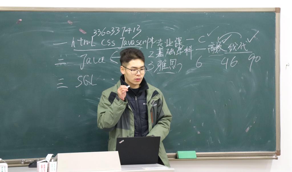 蒋灵南讲述了作为一名软件工程项目的中外合作办学学生他为自己的“3+1”跨境教育目标而设定的学习规划,他说:“我们国教院学生课业压力很大,大一稳打基础的同时抓好雅思学习,大二逐步提升自己的专业能力,大三课程安排更加集中紧凑,需要更加集中精力上好专业课和外方课。建议大家在搞好学习同时能够参与到创新创业项目中去。”蒋灵南学长给新生几点建议,“首先课堂非常重要。”要做好课堂总结笔记,养成良好生活习惯并坚持体育运动。最后,他还贴心地设置了问题答疑环节,从雅思、绩点综测、C语言如何学习,到社团、是否有月考、大一大二课程安排松紧、图书馆空位等细节问题,都为我们进行了耐心清晰地解答。