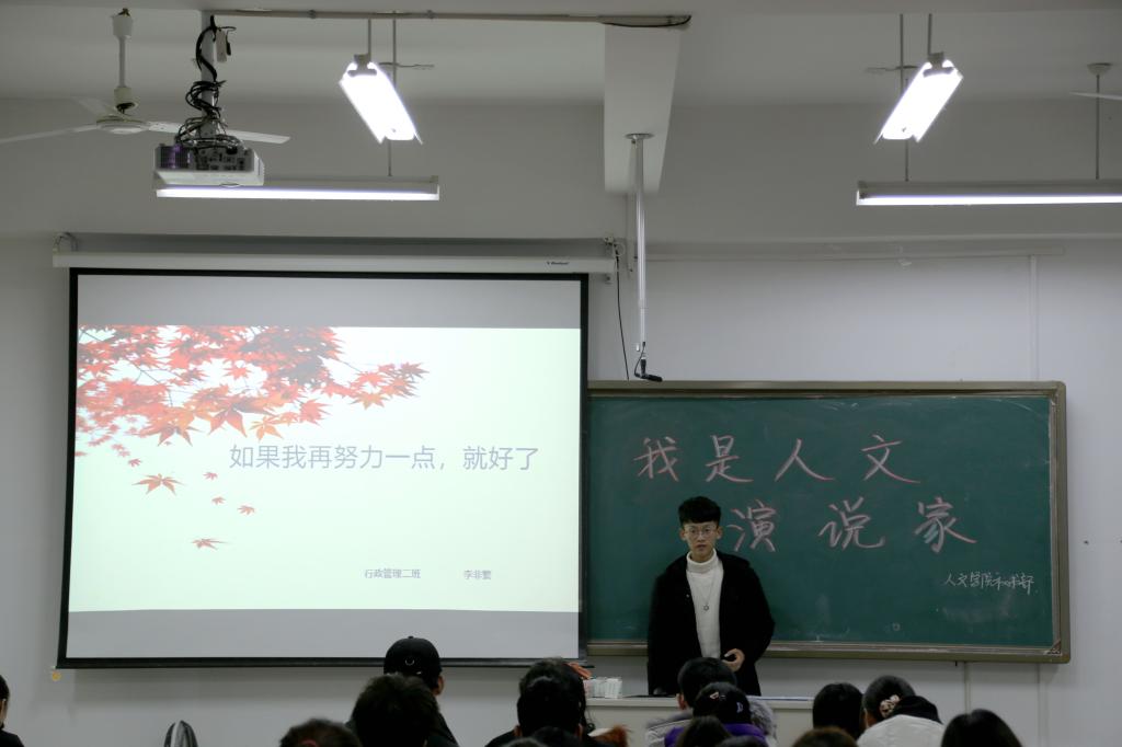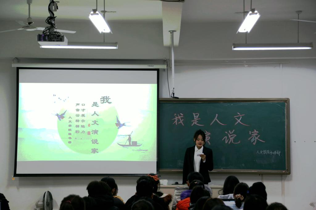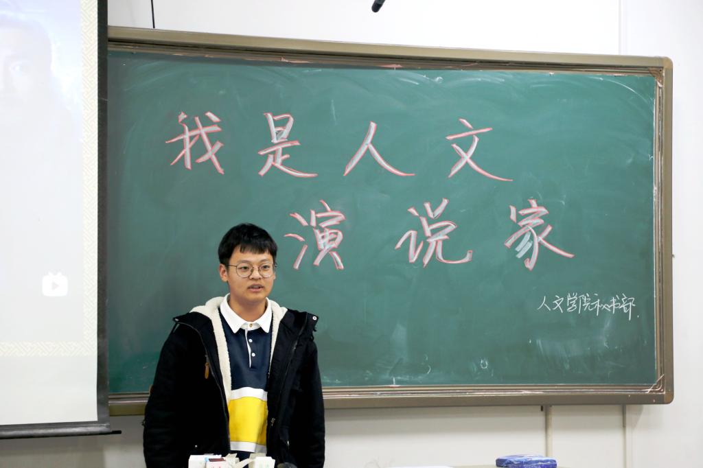 为了丰富同学们的课余生活,活跃校园里的文化生活。12月4日晚6:30,人文学院在图教楼B301举办了2020年“我是人文演说家”决赛,人文学院学生会执行主席李文捷、李玥睿,2018年“我是人文演说家”冠军包宇薇以及大众评审参加本次活动。