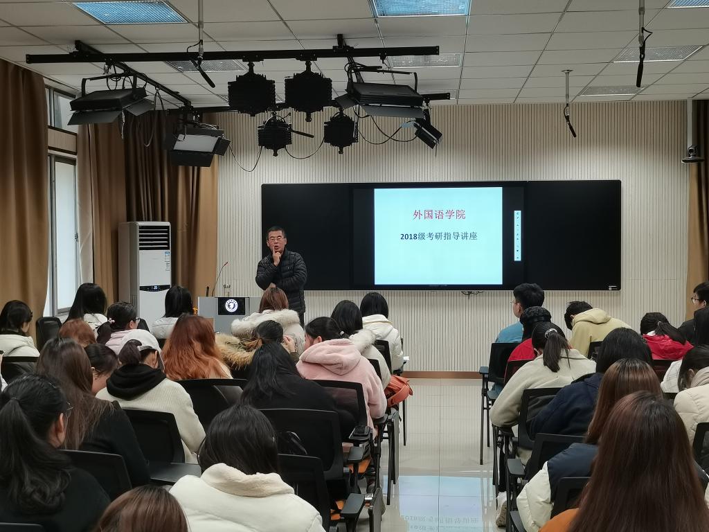 12月11日下午,外国语学院于8305教室举办了一场考研指导专题讲座。本次讲座邀请了外国语学院副院长张志刚为2018级同学进行考研指导,讲座由辅导员杨婷老师主持,2018级全体学生参加了本次讲座。