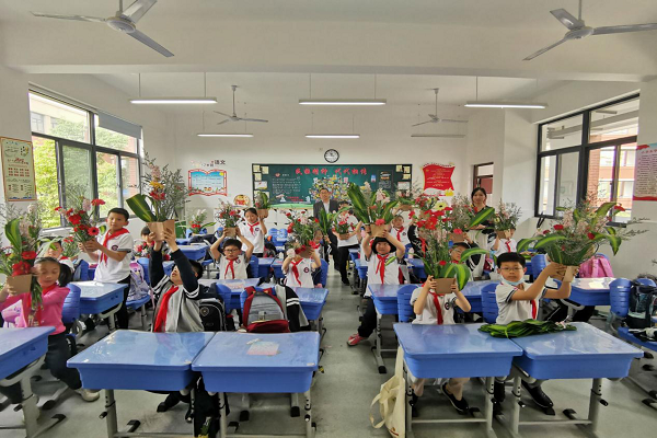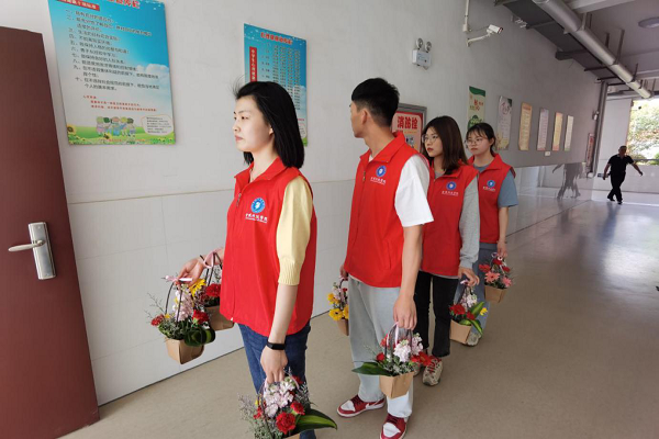 接着,学生志愿者亲自教120名小学生为母亲制作“母亲节”花束,并将亲手制作的“微型花篮”送给三年级各班班主任,也给每一位送上暖心的问候和美好的祝福,愿他们在诗意的季节收获桃李的绚丽和稻谷的金黄!