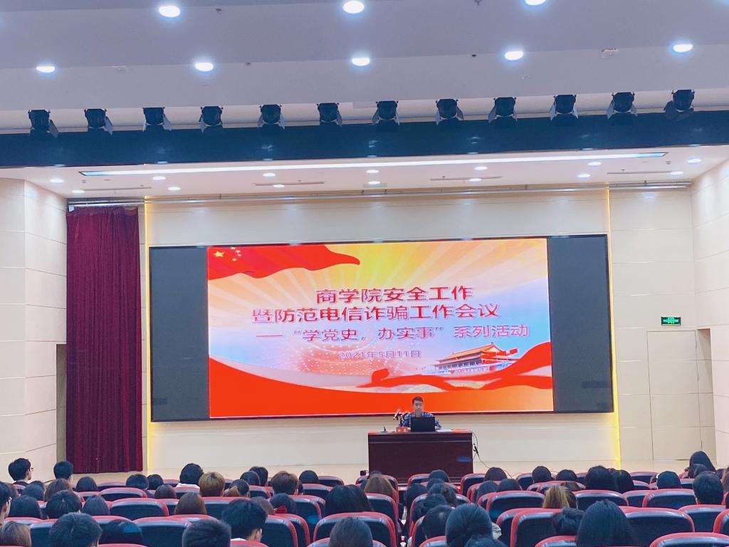 本次会议,是商学院“学党史,办实事”系列活动之一,使同学们对安全和防范电信诈骗有了更深刻的认识,进一步提高了同学们安全意识和防范电信诈骗的能力,为更好维护校园安全稳定、保护大学生人身和财产安全奠定了良好基础。(审稿人:孙亮)