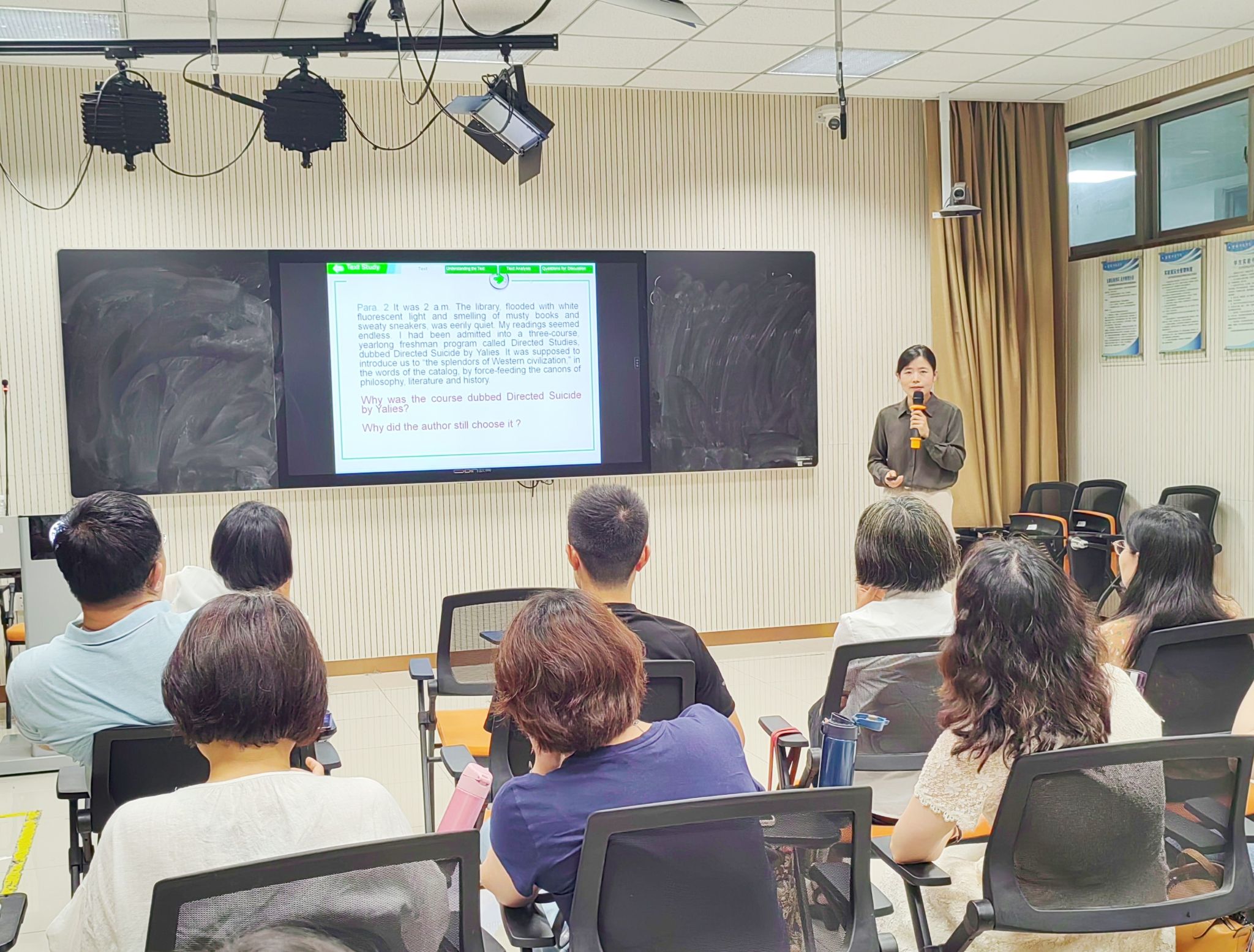近期,外国语学院联合计算机工程学院,积极打造特色活动,通过整合校内外资源,共同举办“方山讲坛”系列讲座。6月19日下午,“方山讲坛”第一期活动正式开始,本次活动特邀南京信息工程大学文学院教师、公共外语教学部高阶英语教学团队课程负责人吴文娟前来进行课程示范和教学交流。