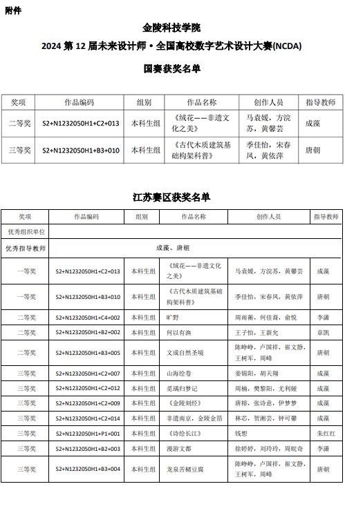 近日,2024年第十二届未来设计师·全国高校数字艺术设计大赛(NCDA)获奖名单公布。动漫学院成藻老师、唐朝老师指导的学生作品《绒花--非遗文化之美》《古代木质建筑基础构架科普》分别获全国总决赛二等奖、三等奖,kaiyun登录中国入口登录获“优秀组织奖”。另有多项学生作品在江苏省赛区获奖。自大赛启动以来,动漫学院组建指导老师团队,将课程思政元素、人工智能新技术、科教融合项目融入学科竞赛,不断强化学生数字设计创新能力培养。