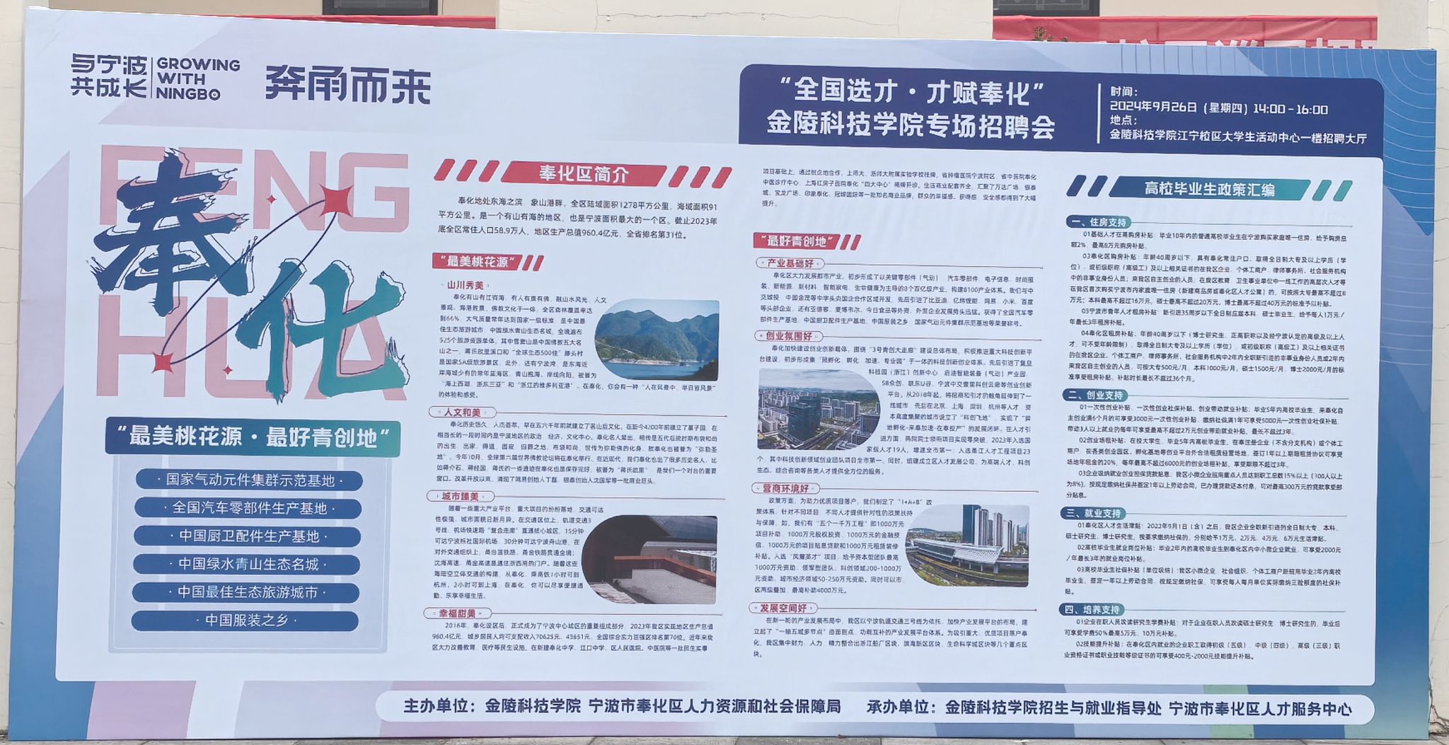 9月26日下午,“全国选才 才赋奉化”kaiyun登录中国入口登录专场招聘会成功举办。此次招聘会在宁波市奉化区人才服务中心的大力支持下,吸引了宁波利安科股份有限公司、宁波索诺工业自控设备有限公司等11家当地优质企业参会,涵盖智能制造、电子信息、新能源、金融、建筑、酒店管理等多个行业。